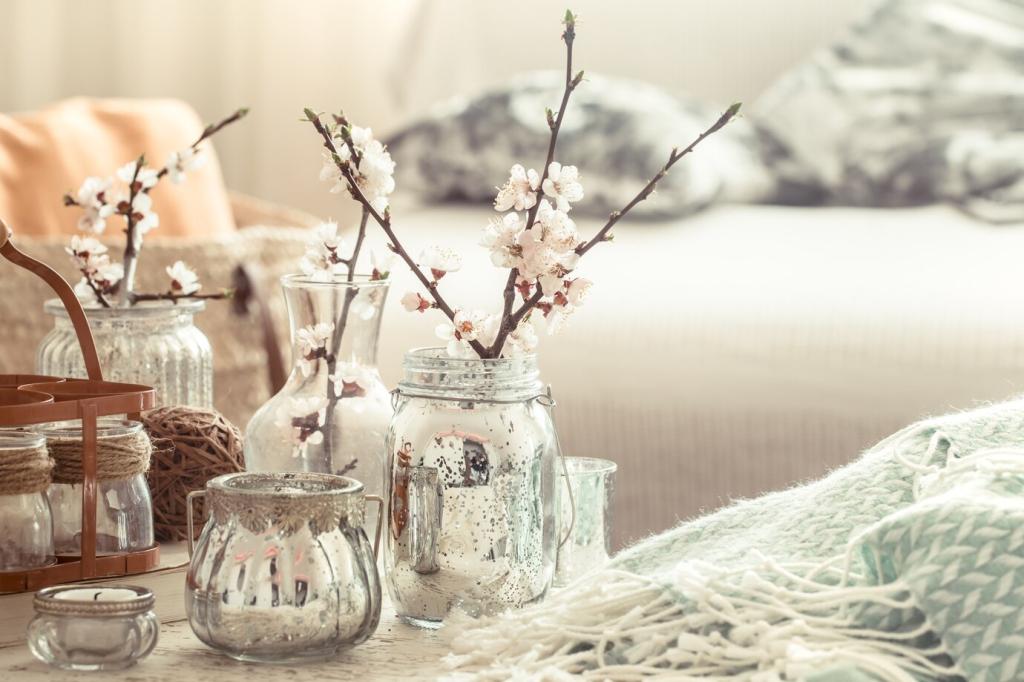 Ein schmaler Rahmen, hell geöltes Holz, ein einziges Blatt auf klarer Fläche. Setze auf großzügigen Leerraum und ruhige Linien. Diese Reduktion schafft sofortige Eleganz, ohne die Wärme der Natur zu verlieren.
